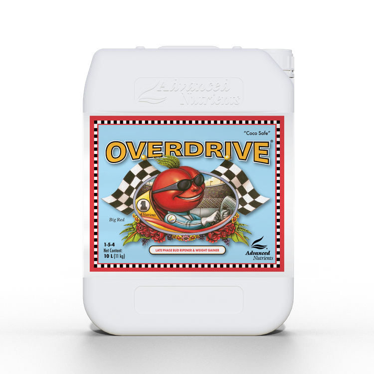 After the peak flowering phase, plants enter the late flowering phase (the exact timing and length of which depends on the strain you're growing). During this time, most growers don't expect much floral development. But instead of accepting this, you can get even more out of your plants during the final phase with Overdrive. Overdrive maintains genetic integrity during the crucial late flowering and maturation phases of plant growth (the last two weeks). When you use Overdrive, you breathe new life into your crops. Buds will gain mass and density as their structures become infused with additional essential oils—much later than when the late flowering phase typically begins to slow down. This, in turn, will ensure significantly larger yields when harvest day arrives. And the extra essential oils mean improved taste, scent, and color, not to mention protection from oxidative stress provided by the powerful antioxidant ascorbic acid. Apply Overdrive to your garden today and make the most of the final weeks of flowering. As always, our Grower Guarantee ensures 100% satisfaction with zero risk. Guaranteed Content: Nitrogen....................................1.0% Nitrogen from Nitrates....................1.0% Phosphorus....................................5.0% Potassium....................................4.0% Magnesium....................................0.92% Source: Magnesium Phosphate, Potassium Nitrate, Potassium Phosphate, Magnesium Sulfate. ALSO CONTAINS NON-PLANT NUTRIENTS: Ascorbic Acid....................0.5% Directions: Along with standard fertilization. Add 2.5 ml per liter of solution to the reservoir. EC will increase by approximately 0.3 units. Shake well before use. Gallery: Video of AdvancedNutrients products