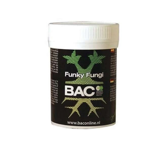 BAC Funky Fungi is a blend of four types of mycorrhizae. Using these fungi in conjunction with BAC stimulators will help them colonize the plant's root system more quickly and continuously. Mycorrhiza is Greek for "fungus root." It's a symbiosis between plants and specific fungi. In nature, mycorrhizal fungi are essential for the survival of all plants. They are ideally suited to finding water and minerals in the soil and transferring them to the plant. Through photosynthesis, the plant creates the required carbon bonds, which in turn nourish the fungi. Both partners benefit from each other, which is why over 99% of all plants enter into this symbiotic relationship. These fungi grow in and around the plant's root. From the root, they grow into the soil, creating a dense network of fine fungal filaments. This increases the size of the root system, improving the absorption of water and minerals such as phosphorus, potassium, and trace elements. Fungi can reach soil pores that are too small for the plant's roots and can make bound elements available to the plant. Instructions: Use 5 grams per plant around the roots and mix well with the soil. Available in 50 gr, 100 gr and 200 gr.