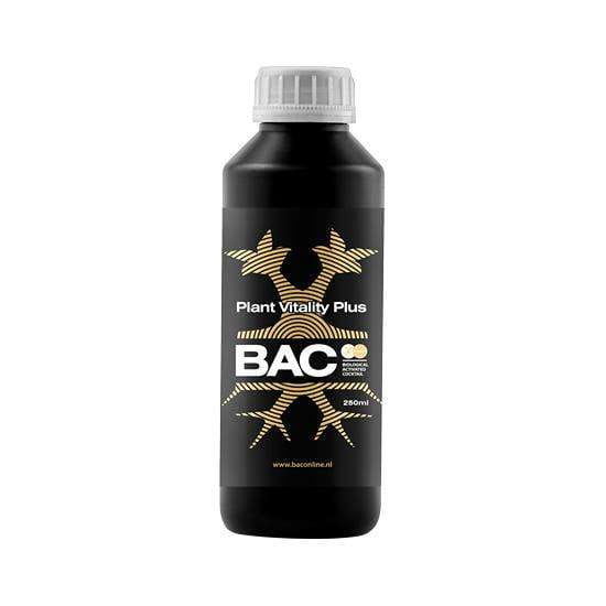 BAC Plant Vitality Plus 250ml - Concentrated organic protective product BAC Plant Vitality Plus helps stressed plants and effectively kills spider mites and their eggs. It can be used during every growing cycle. It can be used preventatively against stress or against insects. It is an excellent and proven aid in the fight against mites, effectively killing not only them but also their eggs after the first application using the solution's natural vapors. Spray appropriately on the upper and lower leaves. Repeat after 5 days if necessary. This product is biodegradable, so it has no negative impact on the plant or the soil. Capacity: 250 ml Gallery