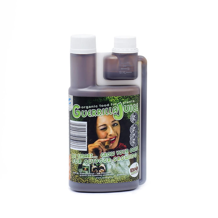 Guerrilla Juice is an organic fertilizer containing balanced ingredients for the growth and flowering of medical plants, also designed for organic cultivation. Designed for both indoor and outdoor cultivation, Guerrilla Juice contains beneficial organisms for root development, promoting healthy plants, and producing very large, tasty, and heavy fruit during flowering. A remarkably simple plant booster. Gallery