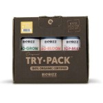 BIOBIZZ TRY-PACK INDOOR BIOBIZZ, BOOSTER AND FERTILIZER SET for growboxes 3x250ml If you're interested in organic growing indoors but don't know how to get started, try the Biobizz Try·Pack Indoor. The perfect set for beginner growers - organic and easy to dose. Match the set with dedicated Biobizz Light mix soil. The TRY-PACK INDOOR set includes a set of boosters and fertilizers for organic cultivation, which includes: 1) BIO-GROW 250ml - for growth 2) BIO-BLOOM 250ml - for flowering 3) TOP-MAX 250ml - flowering stimulator USE: Biobizz products are water-soluble and suitable for use both as a watering additive and as a foliar spray. BIOBIZZ products have ecological certificates: Omri, Skal, EKO. Biobizz TRY PACK INDOOR Fertilizer and Booster Set 3x250ml – Organic Fertilizers for Healthy Plants Biobizz TRY PACK INDOOR is a set of three organic fertilizers and boosters that will help you ensure healthy and vigorous growth in indoor crops. The set contains three 250ml preparations, ideal for fertilizing 1 to 4 plants indoors. Set contents: Bio Grow – a natural growth fertilizer that provides plants with essential nutrients, stimulating their development and growth in the vegetative phase. Bio Bloom – a fertilizer designed for plants in the flowering phase, it supports the development of abundant flowers and fruit by providing the optimal amount of nutrients. Top Max – a booster that increases crop yields and improves the taste and aroma of crops, improving nutrient absorption. The Biobizz TRY PACK INDOOR set is the perfect solution for anyone who wants to achieve high-quality harvests while caring for the environment. Biobizz products are 100% organic, meaning they are safe for both plants and you. Why choose Biobizz TRY PACK INDOOR? Organic ingredients – Biobizz focuses on natural, eco-friendly fertilizers that support healthy plant development without chemicals. Ease of use – the products are ready-to-use and ideal for beginner growers and those looking for simple solutions for indoor cultivation. Efficiency – the kit is enough to fertilize 1 to 4 plants, making it an economical choice. How to use Biobizz TRY PACK INDOOR? Bio Grow – use during the plant growth period, diluting in water and watering every 2-3 days. Bio Bloom – apply during the flowering period to support bud and fruit development. Top Max – use to increase yields and enhance the flavor and aroma of your crops. Biobizz TRY PACK INDOOR 3x250ml is a must-have for every grower who wants to achieve healthy, abundant harvests from indoor crops. Order now and see how easily you can improve the quality of your plants! Detailed information on how to use Biobizz Try-pack Indoor: 1. Bio Grow Bio Grow is an organic fertilizer that provides plants with the nutrients necessary for healthy growth in the vegetative phase. Dosage: Growth phase: Use from the 1st to 4th week of plant growth, depending on the plant type and its needs. Dose: 1-3 ml per liter of water (for small plants in the initial growth phase) 3-5 ml per liter of water (for larger plants during the period of active growth) Frequency: Water the plants every 2-3 days (or every other watering), preferably in the morning. Tip: Use only when the soil is moist to avoid salinization. 2. Bio Bloom Bio Bloom is a fertilizer designed for plants in the flowering phase, which supports flower and fruit production by providing nutrients. Dosage: Flowering phase: Use from the beginning of flowering, i.e. from the moment the plant starts producing buds. Dosage: 2-4 ml per liter of water (depending on plant size and flowering intensity) Frequency: Water the plants every 2-3 days (or every other watering) during the flowering period. Tip: Remember to provide the plants with adequate light and warmth, as this has a direct impact on the effectiveness of fertilization. 3. Top Max Top Max is a booster that improves the taste, smell, and yield of plants by increasing the absorption of nutrients. Dosage: Flowering phase: Top Max is used simultaneously with Bio Bloom to support the final stage of plant growth. Dosage: 1-4 ml per liter of water (depending on the needs of the plants and the growth phase) Frequency: Use every 2-3 days, from the 2nd week of flowering until the end of the flowering phase. Tip: Use Top Max for the last 2-3 weeks of flowering to fully utilize its potential. DOSAGE Biobizz trypack indoor - see the dosing table below