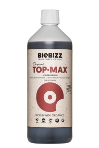 Top Max is a 100% plant-based, organic flowering stimulator. It accelerates cell division during the flowering phase and increases sugar production, increasing the quantity and quality of flowers and fruit. It protects inflorescences from mold and rot. It lowers soil pH and flushes salt deposits from the root area. Application: soil, hydroponics, and in combination with fertilizers. USE: It should be added to every watering throughout the plant's flowering period. Promotes explosive flower production! DOSAGE: 2 to 5 ml per liter of water. BIOBIZZ products are certified by Omri, Skal, and EKO.