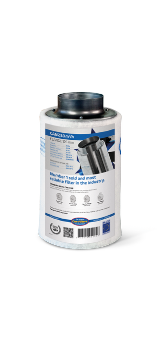 Specification: metal carbon filter from the well-known Dutch company CAN-FILTERS, CAN-Original version, 250 to 325 m3/h, connection: Ø 125 mm, height: 35 cm, weight: 6 kg, carbon amount: 4 kg, width: 20 cm, carbon thickness: 3.5 cm, when regenerating the filter, it is recommended to replace the activated carbon and the pre-filter at the same time.