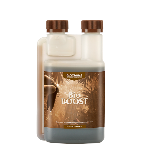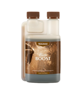 BioBOOST is a product that increases the efficiency of all growing systems and is a powerful flowering accelerator. BioBoost enhances the characteristic flavor, and thanks to gradual ripening, the yield will be larger and more uniform. BioBoost is a true stimulus for plants; the organic active substances will result in additional metabolism, which is precisely what the plant needs during the flowering period. Plants produce more fructose, become stronger and healthier, and are less susceptible to diseases and pests. The result is a larger, higher-quality yield and a fuller, denser harvest than normal. The amount of biologically active substances in BioBoost is enormous. Dosage: 20 to 40 ml/10 liters of water, used together with fertilizers. Use BioCanna BOOST in combination with regular nutrition. - Do not use in combination with products containing hydrogen peroxide (H202) - The mixed solution can be used for 7 days - BioCanna BOOST can be administered manually, by irrigation or by dusting the leaves (always after the lights have turned off to avoid burning the plant) Gallery