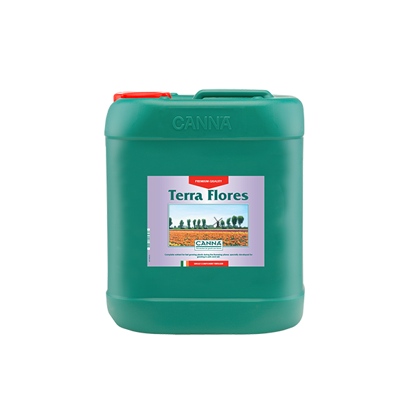 Terra Flores is ideal for stimulating fruit production and contains all the nutrients the plant needs during the flowering phase. Advantages of Terra Flores: Terra Flores is also rich in chelated trace elements, which are contained in a form that can be immediately absorbed, guaranteeing abundant flowers. Terra Flores is a complete professional nutrient for fast-growing plants during the flowering phase, specially formulated for growing in pots and in soil. Terra Flores is excellent for stimulating fruit formation and contains all the nutrients the plant needs during the flowering phase. Terra Flores is easy to use, dissolves directly, and is best suited for growing with run-to-waste automatic irrigation systems. For indoor and outdoor cultivation. Dosage: Shake the bottle well before use. Dissolve 500 ml of concentrate in 100 liters (1:200). The EC of Terra Flores dissolved in tap water varies between 0.9 – 1.6 mS (= EC of the solution + EC of the water). Recommended pH: 5.8 – 6.2. For intensive cultivation, please water the plant regularly. When growing in poor soil, please use the solution daily. When growing in nutrient-rich soil, please use the solution 1 to 3 times a week. Notes: CANNA has developed Terra Flores especially for the flowering phase of the plant. Too much fertilizer has a negative effect on the substrate, the plant and nature in general. Please keep the container tightly closed in a cool place (ultraviolet rays cause the iron chelates in the nutrient to break down). Please keep out of the reach of children. Gallery