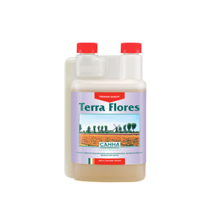 Terra Flores is ideal for stimulating fruit production and contains all the nutrients the plant needs during the flowering phase. Advantages of Terra Flores: Terra Flores is also rich in chelated trace elements, which are contained in a form that can be immediately absorbed, guaranteeing abundant flowers. Terra Flores is a complete professional nutrient for fast-growing plants during the flowering phase, specially formulated for growing in pots and in soil. Terra Flores is excellent for stimulating fruit formation and contains all the nutrients the plant needs during the flowering phase. Terra Flores is easy to use, dissolves directly, and is best suited for growing with run-to-waste automatic irrigation systems. For indoor and outdoor cultivation. Dosage: Shake the bottle well before use. Please dilute 500 ml of concentrate in 100 liters (1:200). The EC of Terra Flores dissolved in tap water varies between 0.9 – 1.6 mS (= EC of the solution + EC of the water). Recommended pH: 5.8 - 6.2. For intensive cultivation, please water the plant regularly. When growing in poor soil, please use the solution daily. When growing in nutrient-rich soil, please use the solution 1 to 3 times a week. Notes: CANNA has developed Terra Flores especially for the flowering phase of the plant. Too much fertilizer has a negative effect on the substrate, the plant and nature in general. Please keep the container tightly closed in a cool place (ultraviolet rays cause the iron chelates in the nutrient to break down). Please keep out of the reach of children. Factory-packed fertilizer. Gallery