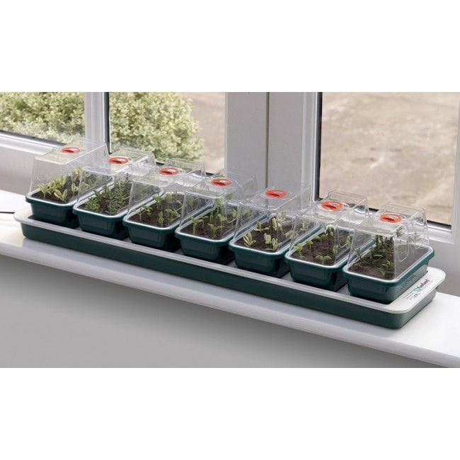 In our homes, windowsills provide ideal lighting conditions for seedlings to thrive, but they are often also cool and airy. The Garland heated tray provides the right temperature for seedlings and seeds. Made in the UK. Specifications: Heated tray with 7 greenhouses for seedlings and cloning plants. Manufacturer: Garland; Tray size: 76x18.5xh15 cm; Tray power: 13 W; Large-scale cloning and cuttings will become much faster and easier; a waterproof bottom ensures safe work with propagators. The tray's dimensions allow for up to 7 propagators. Gallery