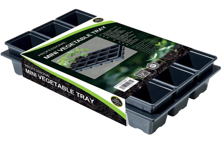 Garland Professional Mini Vegetable Tray - Vegetable and Herb Seed Tray with 15 Pots. The Professional Mini Vegetable Tray contains 15 square pots, each measuring 7 cm. Made of sturdy recycled plastic, it's ideal for growing vegetables like peppers, zucchini, cucumbers, chilies, and tomatoes. Perfect for growing plants from seed and seedlings indoors or in a greenhouse. Simple instructions make it easy to get started. To start, fill each pot with seed and seedling compost. Then water with a fine mist of water. Place a seed or seedling in each pot and cover with a thin layer of compost. Place the tray in a bright spot, but avoid direct sunlight. Keep the compost moist; never let it dry out completely. Specifications: -15 pots included -Tray dimensions: 38 cm long, 23.5 cm wide and 7.5 cm high.