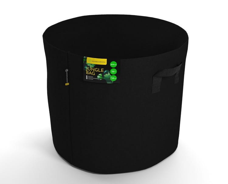 Herbgarden Jungle Bag Round - Breathable Fabric Pot 44x44xh38cm Height: 38cm Diameter: 44cm Model: 56L Color: Black Type: Round Material Thickness: 260g Breathable material ensures high drainage and root aeration. Additionally, it maintains the right temperature for plants – lower in summer and higher in winter. A reliable way to grow potted plants. Made of very strong material. Our pots are made of a material that releases heat and aerates the root zones. Aeration allows for a longer growth cycle. Available in round and square versions. Herbgarden™ also offers special anti-weed fabric covers (not included in the price of the pot) available in our store. - Environmentally friendly - Excellent drainage and aeration - Each pot has a sturdy nylon handle - Unique Herbgarden™ design
