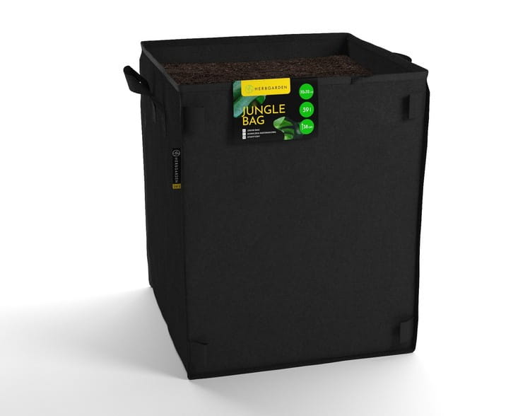 Herbgarden Jungle Bag Square - square breathable fabric planter 32x32xh38cm 39L Height: 38cm Base dimensions: 32x32cm Model: 39L Color: Black Type: Square Material thickness: 260g Breathable material ensures high drainage and root aeration. Additionally, it maintains the right temperature for plants – lower in summer and higher in winter. A reliable way to grow potted plants. Made of very strong material. Our planters are made of a material that releases heat and aerates the root zones. Aeration allows for a longer growth cycle. Available in round and square versions. Herbgarden™ also offers special anti-weed fabric covers (not included in the price of the planter) available in our store. - environmentally friendly - excellent drainage and aeration - each planter has a solid nylon handle - unique Herbgarden™ design - the Square version has special holders for bamboo poles