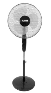 RAM 400mm Pedestal Fan (16") Solid Base - 3 Speeds This oscillating RAM pedestal fan is reliable and quiet. It has an adjustable 400mm (16") head. It has three speeds and the fan height can be easily adjusted. Specifications: Blower diameter: 40cm Height adjustable. Three speeds of operation. Powerful, solid and economical. This mixing fan is the perfect addition to any growing set.