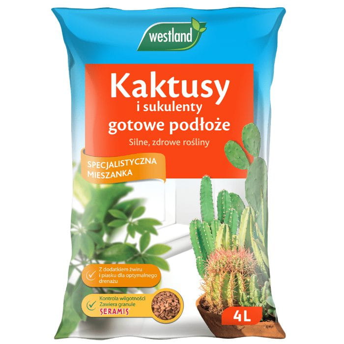 Specialized mixture for cacti: - with added gravel and sand for optimal drainage, - contains SERAMIS granules - moisture control, - ensures strong, healthy plants.